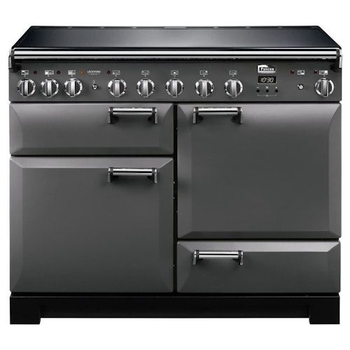 Falcon leckford deluxe 110 met 5 inductiezones, powerboost functies, 1 grill oven, 1 multfunctionele oven met 8 functies, inhoud 79 liter, 1 hetelucht oven met 1 functie programma's, inhoud 79 liter en broodbaklade.