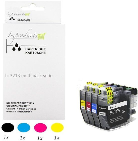 Improducts ® Huismerk Inktcartridge Alternatief Brother LC3213/ LC-3213 / 3213 Inktcartridges set van 4 Stuks (1x LC3213BK zwart, 1x LC3213C cyaan, 1x LC3213M magenta, 1x LC3213Y geel) = 1x Multipack