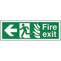 VSafety NHS Fire Exit Arrow Left Sign - 300mm x 100mm - Rigid Plastic - Noodseinen en nooduitgangsborden