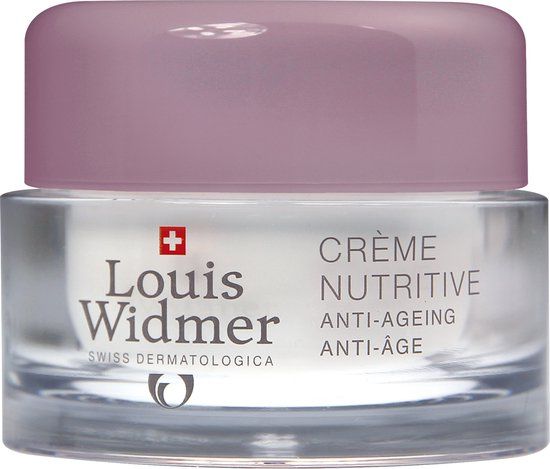 Louis Widmer Crème Nutritive Anti-Ageing Licht Geparfumeerd Nachtcrème 50 ml. De Water/Olie-emulsie zorgt ervoor dat de actieve bestanddelen in de diepe huidlagen worden opgenomen waar ze hun verjongende en hydraterende werking vrijgeven. Het biostimulatorencomplex hydrateert de huid, die daardoor weer soepel, elastisch en zijdezacht wordt. Panthenol zorgt ervoor dat de huid beter vocht kan vasthouden en verzacht de geïrriteerde huid. Vitamine A helpt de verhoorning te regelen. Vitamine E neutraliseert de schadelijke gevolgen van vrije radicalen.-Louis Widmer Crème Nutritive Anti-Ageing Licht Geparfumeerd Nachtcrème 50 ml