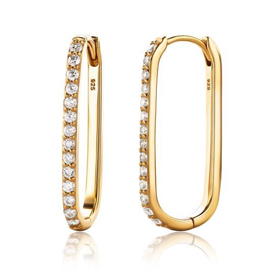 Miore® - Gouden Oorringen Versierd met Zirkonen - Dames - Verguld 18 Karaat Goud - Geelgoud - Oorbellen - Ovaal Rechthoek - Loops - Infinity Band Setting - Cubic Zirconia - Allergeenvrij - Handgemaakte Hoogwaardige Sieraden