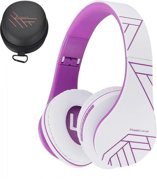 PowerLocus P2 - Draadloze Over-Ear Koptelefoon - Bluetooth 5.3 - Wit/Paars - Oordopjes