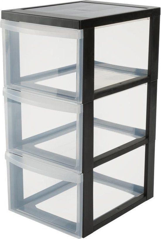 Iris Ladekast met Wieltjes 3x15L 39x29x61.5 cm Transparant/Zwart - Opbergkasten en -kluisjes