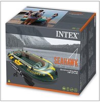 Met de Intex 68351 Seahawk 4 set heeft u een uitstekende opblaasbare boot geschikt voor vispartijen en/of recreatieve vaartochten. Geschikt voor 4 personen. De Seahawk 4 set wordt geleverd inclusief 2 opblaasbare kussens, 2 aluminium peddels en een handpomp.