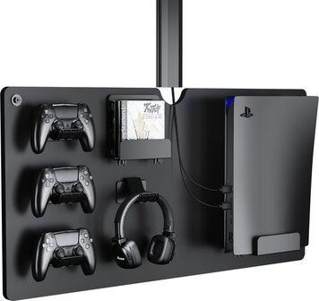 Een praktische en functionele wandplank voor het opbergen van uw game controllers console headset kabels en games. Geschikt voor verschillende spelcomputers zoals onder andere alle Playstation Nintendo en Xbox consoles en accessoires. Afmetingen van de wandplank zijn 80 cm breed en 40 cm hoog.