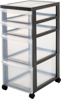 IRIS Design Chest ladesysteem - 4 lades - Zwart/Transparant - Met wieltjes