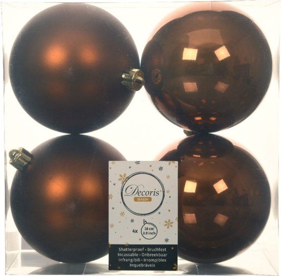 Decoris Kerstballen - 4 stuks - Kaneel Bruin - 10 cm - Kunststof - Glans/Mat - Ornamenten voor feestdagen