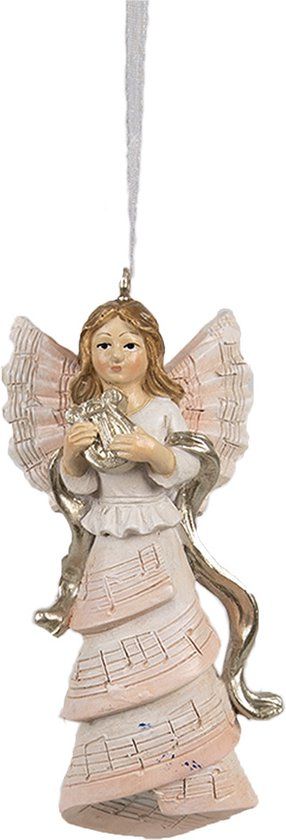 Clayre & Eef Kersthanger Engel 4x3x10 cm Roze Kunststof - Ornamenten voor feestdagen