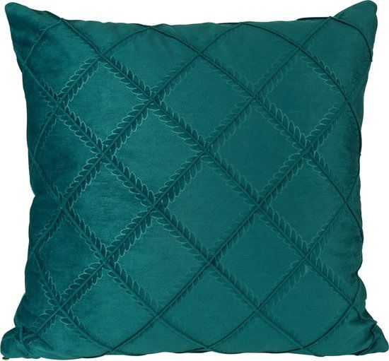 QUVIO Velvet Square Pillow - 45x45cm - Dark Green with Diamond Pattern - Ottomane-kussens