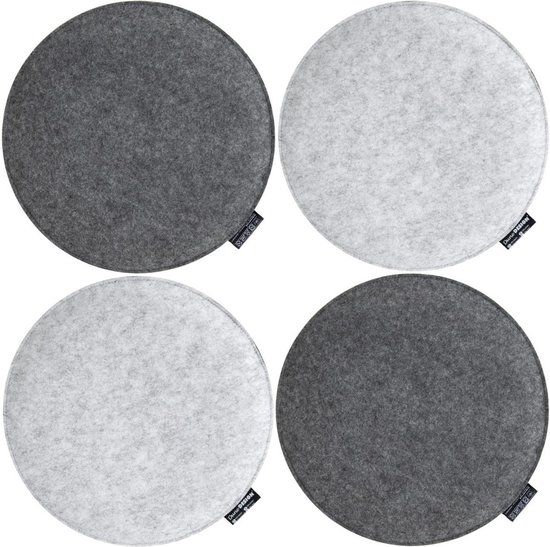 4 vilten zitkussens rond - Ø 35x3cm - grijs