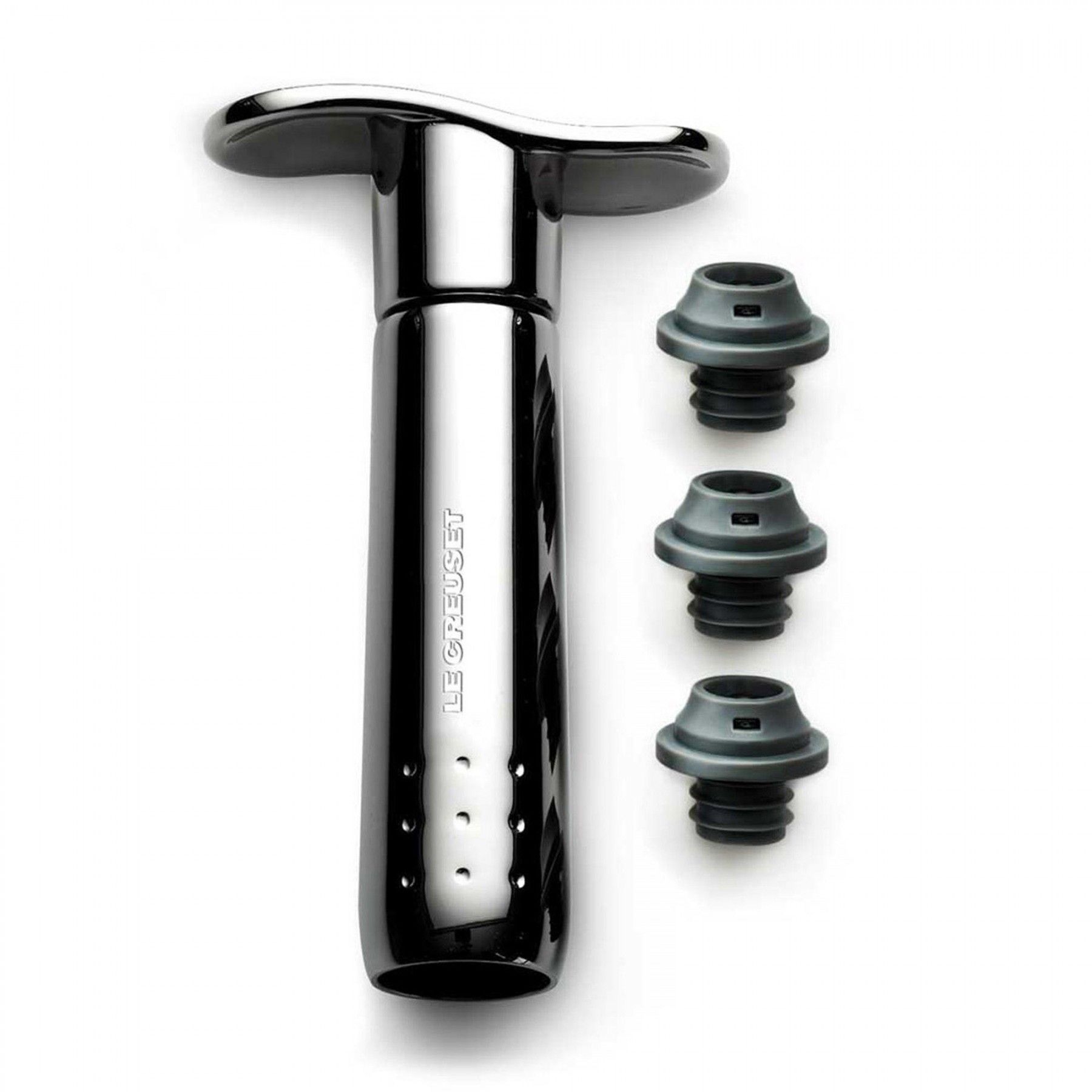 Once wine has been opened, it is important to preserve it properly so as to enjoy the rest of the bottle another day.\n\nThe Le Creuset metal wine pump preserves wine by removing air from inside an opened bottle, then tightly sealing it using a du