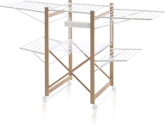 Het inklapbare ontwerp van het droogrek zorgt ervoor dat het eenvoudig kan worden opgeborgen wanneer het niet in gebruik is, waardoor het perfect is voor kleinere ruimtes. Bovendien zijn de ingebouwde wieltjes ideaal voor het verplaatsen van het droogrek, zodat u het gemakkelijk kunt verplaatsen naar de ideale drooglocatie.