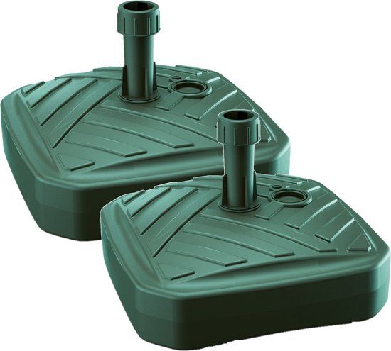 2x Stuks vierkante kunststof parasolvoeten groen 12 liter - breedte 39 cm - Overige parasols