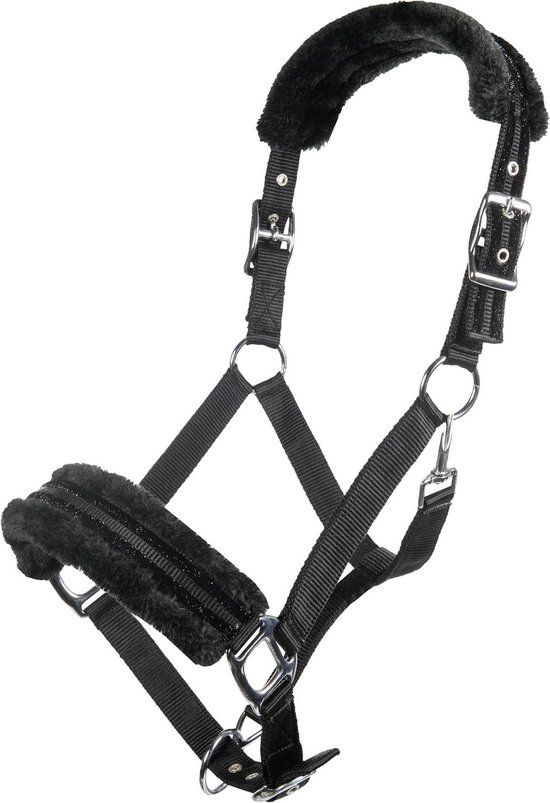HKM Nylonhalster -Glitter- zwart Pony - Paardenhalsters