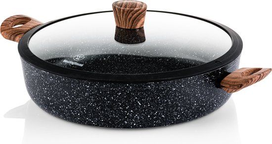Westinghouse Hapjespan Inductie - Ø 32 cm - Zwart Marmer Wood - Speciale Editie - Met Deksel - Pannendeksels