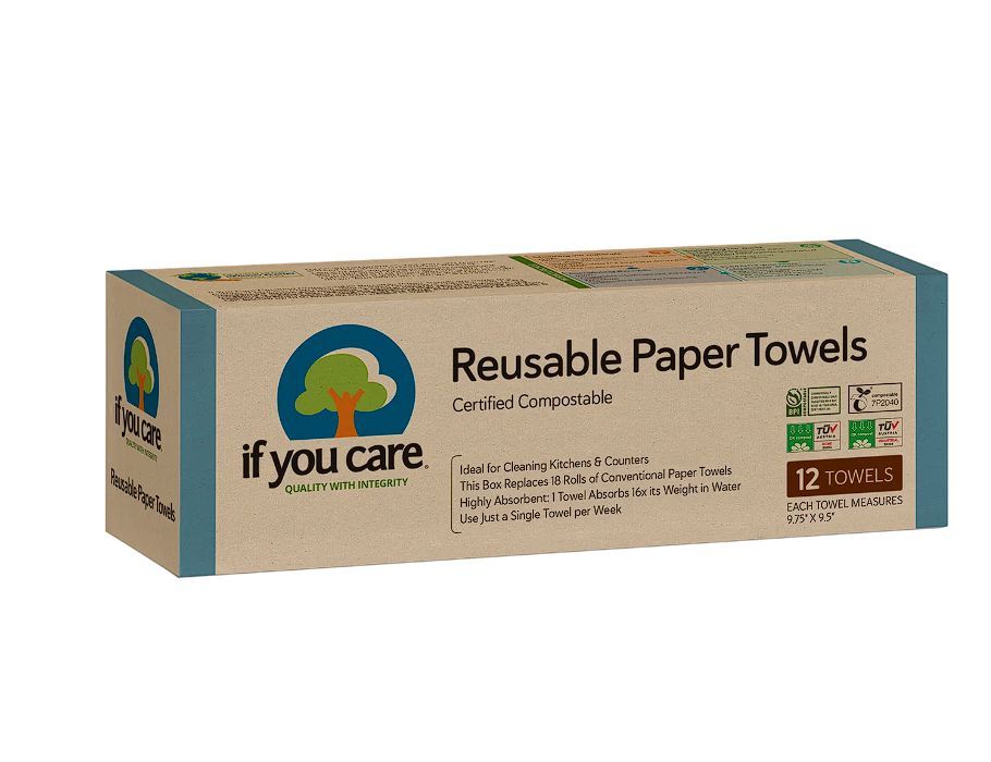 If You Care herbruikbare papieren handdoekjes worden in een gepatenteerd proces gemaakt van een driedimensionaal mengsel van cellulose, non-GMO ongebleekt katoen en mirabiliet - een natuurlijk mineraal zout.