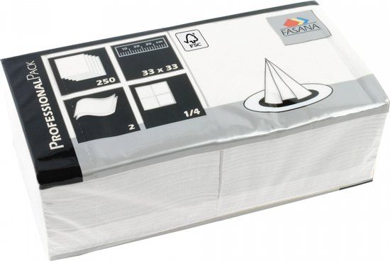 Bekijk productFASANA Servet | 33x33cm | 2-laags | 1/4 vouw | Wit | 250 stuks - Papieren servetten