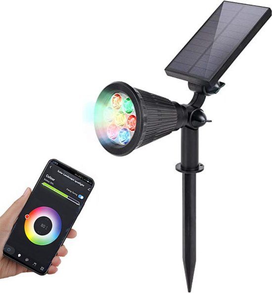 Lueas® Lueas Solar Smart Tuinverlichting - RGBW LED Buitenlamp met App - Zwart - Grondspot/Wandspot