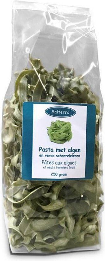Salterra Pasta Met Algen & Ei is pasta met algen en verse scharreleieren. Deze pasta is op basis van ei, daarom voedzamer en smaakvoller. Deze product is voor ieder die verantwoord, culinair en/of onderscheidend de maaltijd wil verrijken.