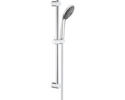 Heerlijk douchen zoals jij wilt Deze set is voorzien van een handdouche met drie straalsoorten. Naast de zomerse Rain straal en de waterbesparende optie van de SmartRain straal is er de revitaliserende Massage straal. Een heerlijk pulserende straal voor hoofd, nek en schouders met een ontspannende werking. De doucheset heeft meer in petto wat het doucheplezier alleen maar vergroot. Om te beginnen is de installatie van de 600 mm glijstang al heel makkelijk dankzij het QuickFix® systeem. De bestigingspunten zijn instelbaar zodat je gebruik kunt maken van de bestaande boorgaatjes. En dankzij de TwistFree doucheslang heb je nooit meer last van een in de knoop rakende doucheslang. De slang draait namelijk altijd met je mee. Dankzij SpeedClean krijgt kalk geen kans en is de set voorzien van de duurzame chromen GROHE StarLight® glanslaag. Makkelijk te reinigen en ook na jarenlang gebruik blijft de glans bewaard.