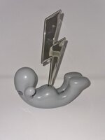 De meeste grappige memo/pen houder voor op je bureau met de bliksem lightning als brieven opener. Met dit mannetje heb je altijd een lach op je gezicht tijdens kantoor uren.