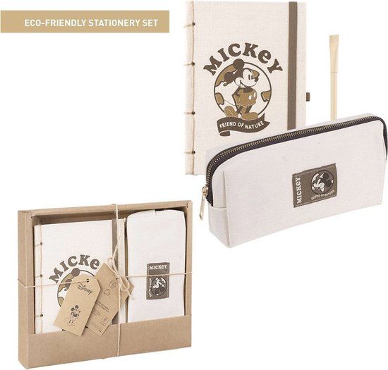 Mickey Mouse Schrijfset (3 stuks) - Notitieboek, Pen & Canvas Hoesje - Penhouders