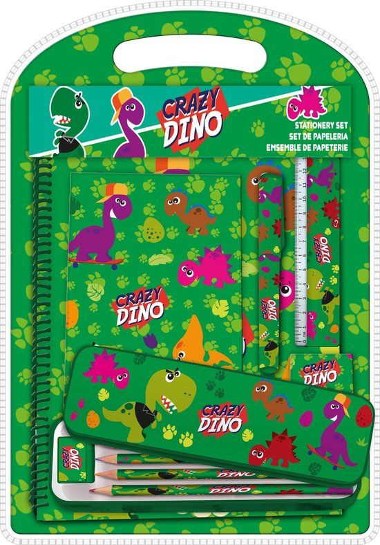 Kids Licensing Schrijfset Crazy Dino - Groen - Papier & Kunststof - Pennen- en potloodsets