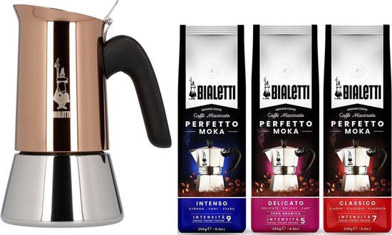 Bialetti Venus Percolator RVS 10 kops + koffie proefpakket 3 x 250gr - Zwart, Zilver