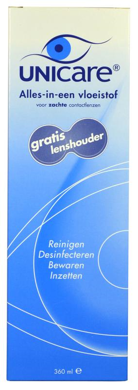 Unicare Alles-in-één Vloeistof Zachte Contactlenzen + Lenzenhouder 360ML