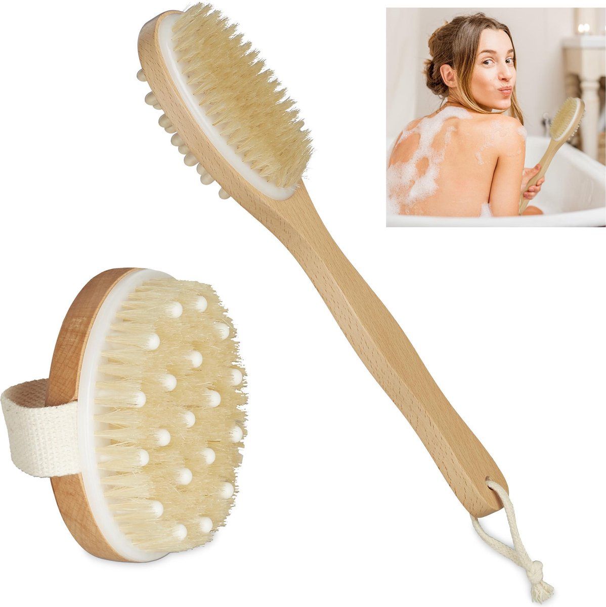 Relaxdays Badborstel 2 stuks - droogborstel - anti-cellulitis borstel - lichaamsborstel