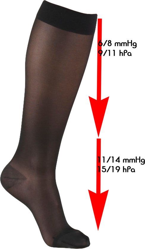 Onze kniekous met lichte compressie is ideaal om dikkere enkels, gezwollen en vermoeide benen en zelfs oedeem of spataderen te voorkomen.