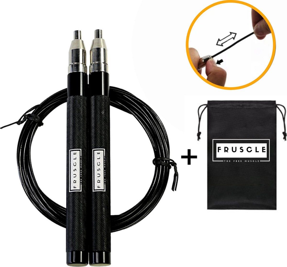 Fruscle Springtouw - verstelbaar speed rope - zwart/zilver - cardio training - rope skipping sport - Picknickspeelsets