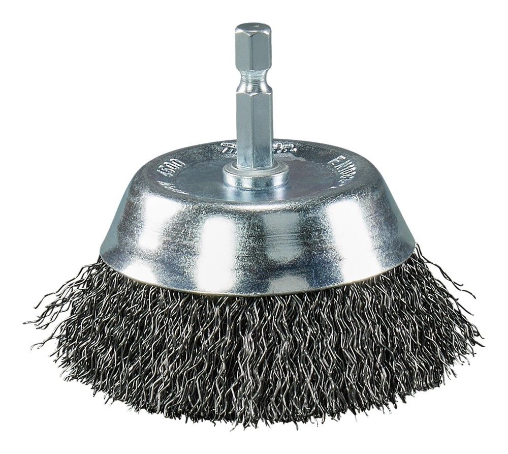 Makita komborstel 75mm met 1/4" vorm E aansluiting. Deze komborstel heeft geplooid staaldraad en is uitstekend geschikt voor het reinigen en verwijderen van verf, roest, aanslag en schilfers, of voor het ontbramen van ijzer of staal.
