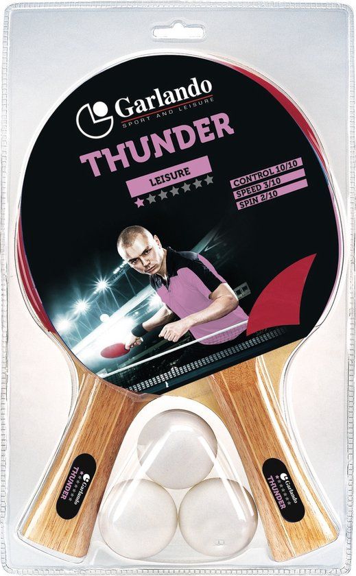 De Garlando Thunder set bevat 2 batjes en 3 pingpong balletjes.