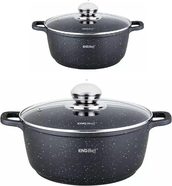 KINGHOFF Braadpannen - met Aromaknop - 16 cm - 1.3 liter - Zwart