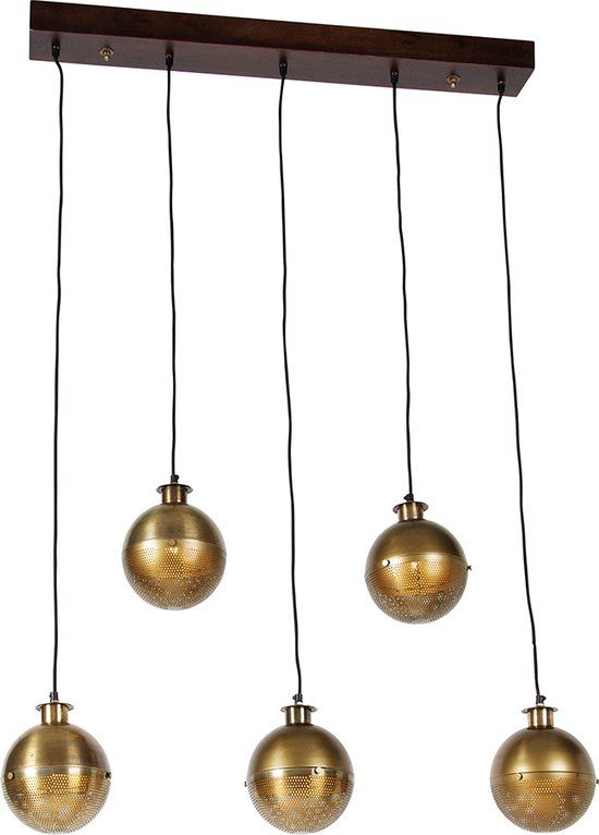 Nee, je hebt het niet te hoog in je bol. Deze bolvormige industriële hanglamp is de perfecte toevoeging aan bijvoorbeeld je eetkamer of woonkamer. Haicha heeft een diepte van 18 cm, een hoogte van 143 cm en een lengte van 94 cm De montageplaat heeft een hoogte van 5 cm, een lengte van 94 cm en een breedte van 11 cm. De lamp kan gedimd worden (dimmer niet inbegrepen) en je moet zelf nog vijf lichtbronnen met E27 fitting (max. 25 watt) er los bij bestellen. De lamp is gemaakt van hout met staal en afgewerkt in het brons met bruin. Wat een plaatje!.