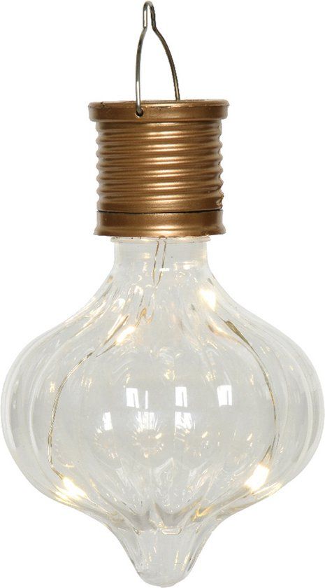 Solar buitenverlichting bolvormige hanglamp/peertje gemaakt van kunststof. Waan je in oosterse sferen met de Marrakech hanglamp op zonne-energie. Hang de lamp bijvoorbeeld aan de schutting of veranda. Het aantal werkuren is afhankelijk van de hoeveelheid zonlicht, het gemiddelde is 6 werkuren. LED kleur: warm wit. Met aan/uit schakelaar. Afmeting: Diameter: ca. 7,5 cm. Hoogte: ca. 11,5 cm. Merk: Decoris.