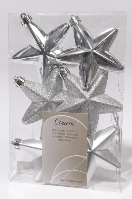 Decoris 027861 Kerstornamenten Sterren Zilver 7,5cm - Platte schoenen