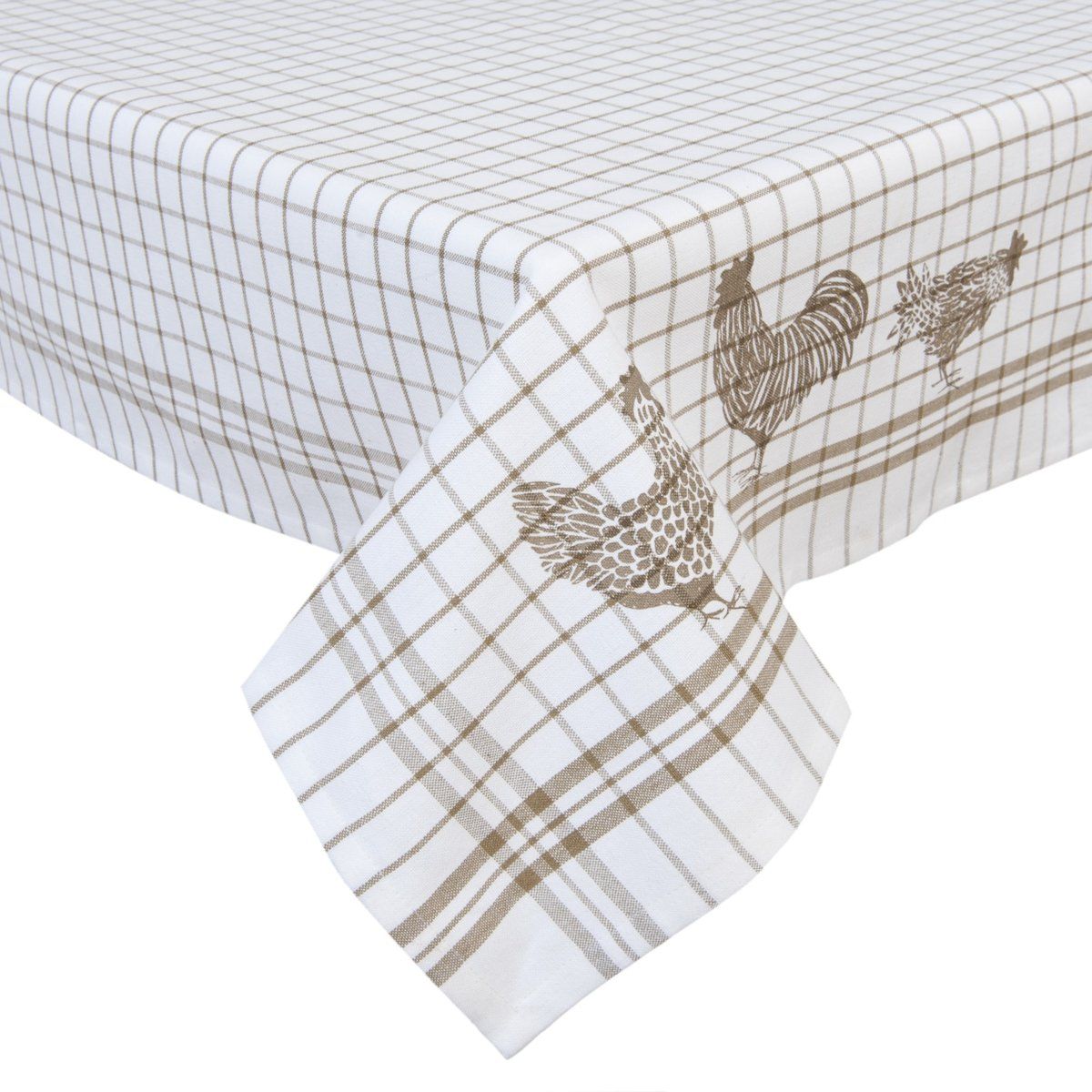 Clayre & Eef Tafelkleed - textielserie Landelijk - geruit - Kippen & Hanen - 150 x 250 cm