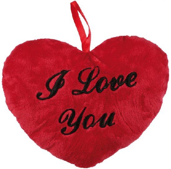 BestPriceAlarm I Love You Heart Cushion (26 cm) - Zwart/Rood - Polyester