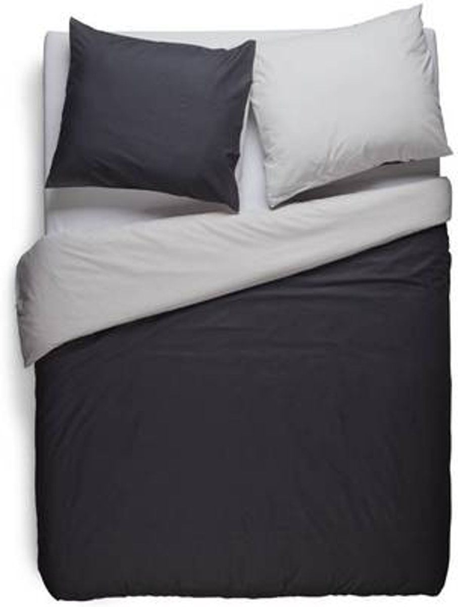 Snoozing Two Tone - Dekbedovertrek - Lits-jumeaux - 270x200/220 cm + 2 kussenslopen 60x70 cm - Antraciet/Grijs