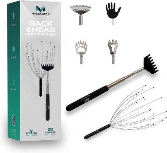 Ben jij op zoek naar het ultieme krabgevoel dat je rug, nek, hoofd en baard tot in de puntjes masseert? Zoek dan niet verder! De Massagerr Hoofd & Rug Krabber Set biedt de perfecte oplossing met zijn unieke 5-in-1-ruggenkrabber en hoofdkrabber met 20 vingers.