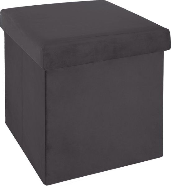 Atmosphera Poef/hocker/voetenbankje - opbergbox - donkergrijs - 38 x 38 x 38 cm - opvouwbaar - Poefjes