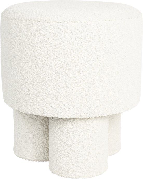 Feliz Lifestyle Marcos Kruk/ Poef Bouclé Wit - Rond - 40 cm - Wit - Poefs