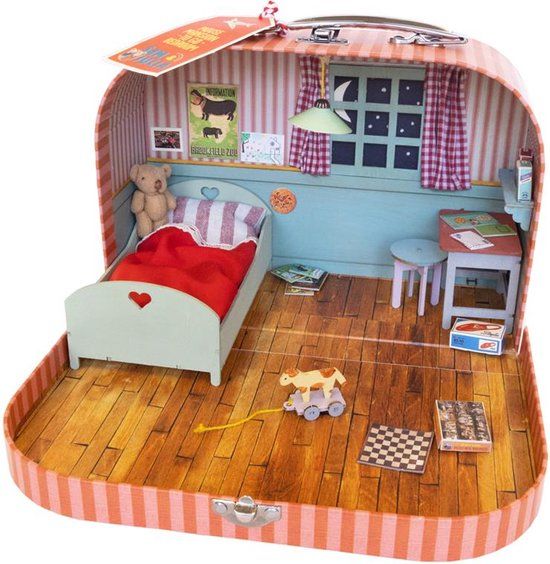 Het Muizenhuis speelgoed koffer slaapkamer - Sam en Julia - To Go. - Poppenhuisspeelsets