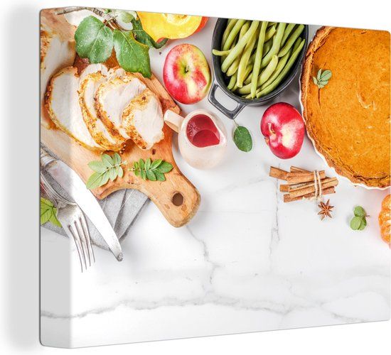 Canvas Schilderij Groente - Fruit - Vlees - Kruiden - 40x30 cm - Wanddecoratie - Posters