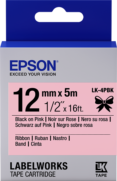 Epson Label Cartridge Satin Ribbon LK-4PBK zwart/roze 12 mm (5 m)