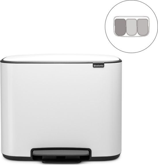 Brabantia Bo Pedal Bin - 3 x 11 Litres - White - Prullenmanden
