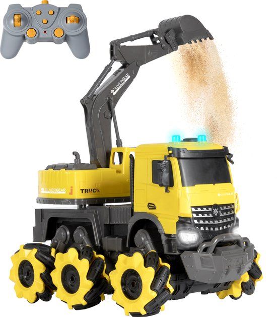 Silvergear Bestuurbare RC Graafmachine - Geel - 10 km/u - 30 M Bereik - Offroad - LED - Speelgoed Autos Jongens / Meisjes - Radiografisch bestuurbare auto's