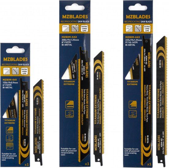 3 delige Reciprozaagbladen set Titanium/Staal, bestaande uit: